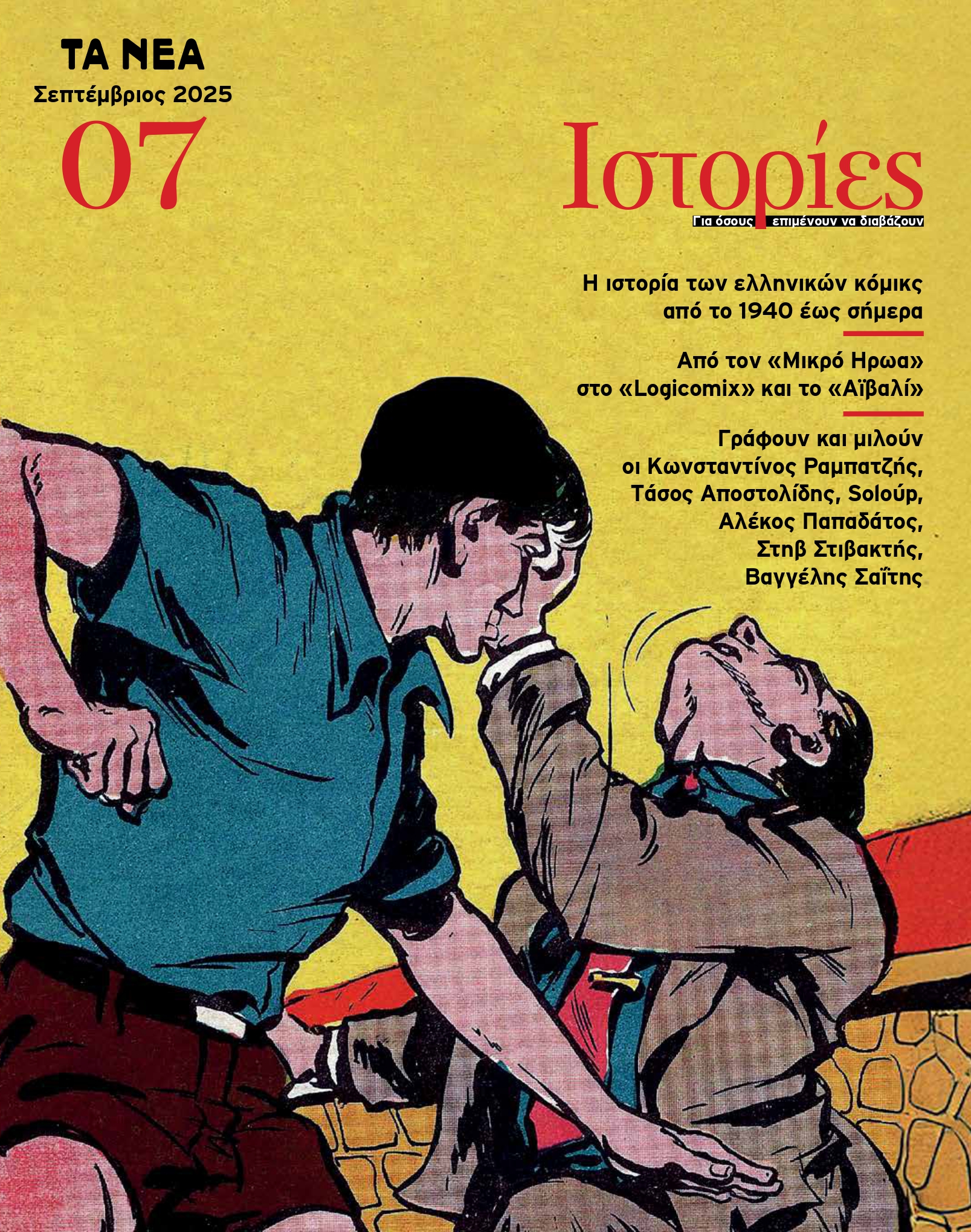 Το Σάββατο 27 Σεπτεμβρίου, με την εφημερίδα ΤΑ ΝΕΑ Σαββατοκύριακο, κυκλοφορεί το έβδομο τεύχος του περιοδικού ΙΣΤΟΡΙΕΣ. Ένα τεύχος αφιερωμένο σε έναν κόσμο που σημάδεψε γενιές αναγνωστών: τα ελληνικά κόμικς. Με αφορμή την επιστροφή στους θρυλικούς ήρωες που συντρόφευσαν τα παιδικά και εφηβικά μας χρόνια, αλλά και με ανοιχτό βλέμμα στο παρόν και στο μέλλον της τέχνης του graphic novel, το περιοδικό προτείνει ένα μοναδικό ταξίδι στο παρελθόν, στο σήμερα και σε όσα έρχονται.