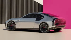 Τα διογκωμένα φτερά, οι μεγάλες ζάντες με κεντρικό κλείδωμα και ενσωματωμένα αεροδυναμικά καλύμματα, οι νευρώσεις στο καπό και ο κλωβός ασφαλείας παραπέμπουν στην αγωνιστική κληρονομιά του κλασικού μοντέλου. Οι πλαϊνές εισαγωγές αέρα είναι επίσης εμπνευσμένες από την 110 R με τον κινητήρα πίσω, αλλά εδώ εξυπηρετούν τον σκοπό της ψύξης των μπαταριών. Το πίσω μέρος μοιάζει με το μπροστινό μέρος, με κρυμμένα πίσω φώτα και μια μαύρη κορδέλα με λεπτά LED.