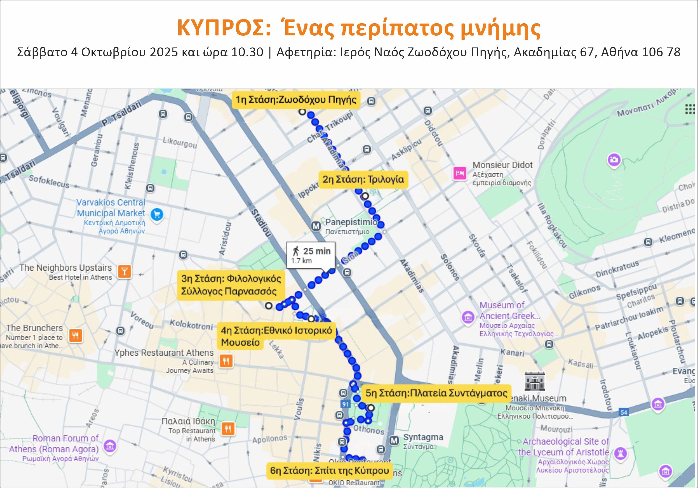 Η πέμπτη στάση θα είναι η Πλατεία Συντάγματος, στενά συνδεδεμένη με την έκφραση αλληλεγγύης του ελληνικού λαού στις ιστορικές περιπέτειες της Κύπρου.