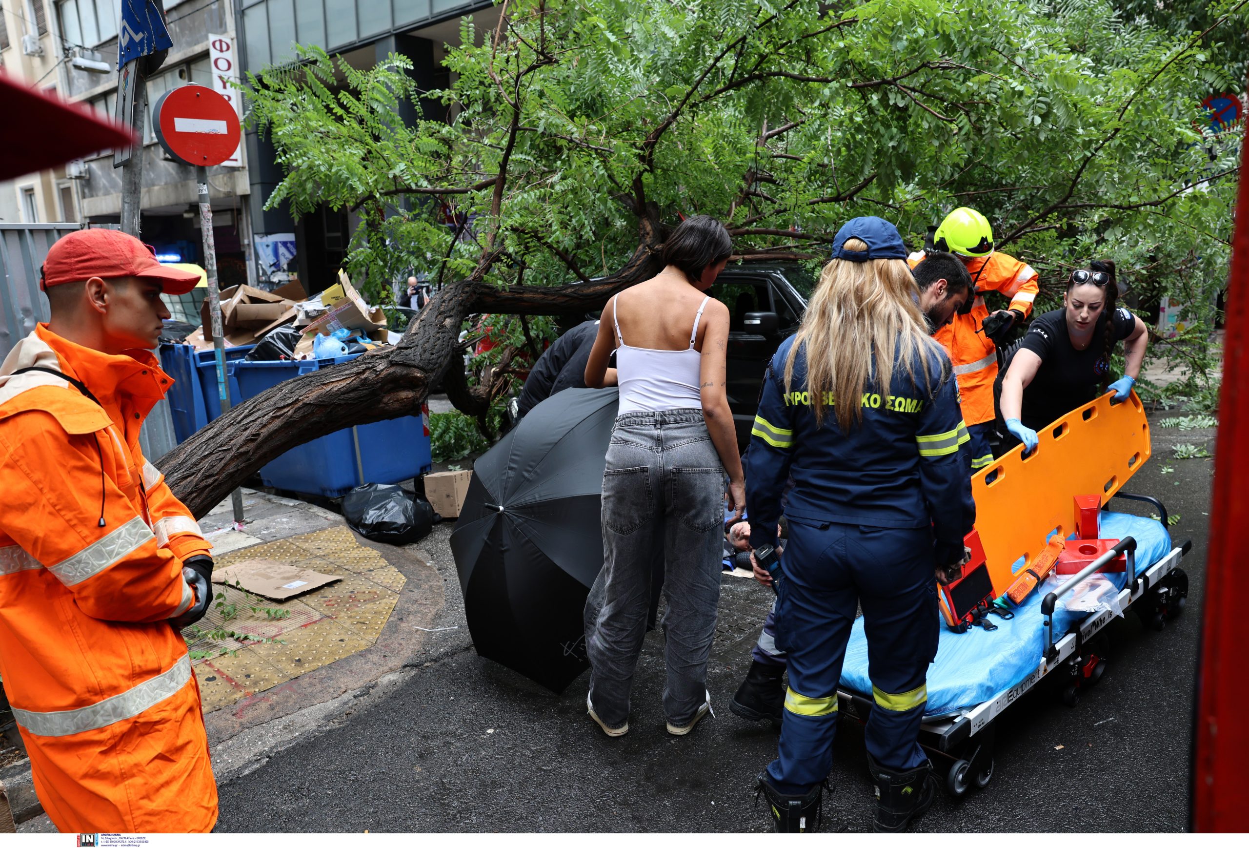 Ένας άνδρας τραυματίστηκε στο κέντρο της Αθήνας όταν έπεσε δέντρο την ώρα που εκείνος διερχόταν από το σημείο.