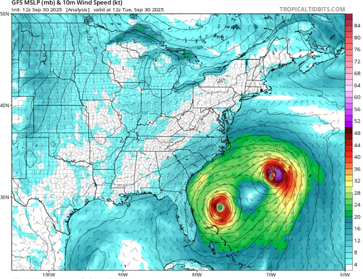 Αυτή την εβδομάδα, λαμβάνει χώρα μια αξιοσημείωτη διαδικασία γνωστή ως φαινόμενο Fujiwhara. Και οι δύο τροπικοί κυκλώνες χορεύουν ο ένας γύρω από τον άλλον και αλληλεπιδρούν στη συμπεριφορά τους, ένα φαινόμενο που δεν έχει παρατηρηθεί εδώ και αρκετό καιρό.
