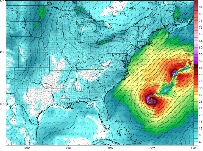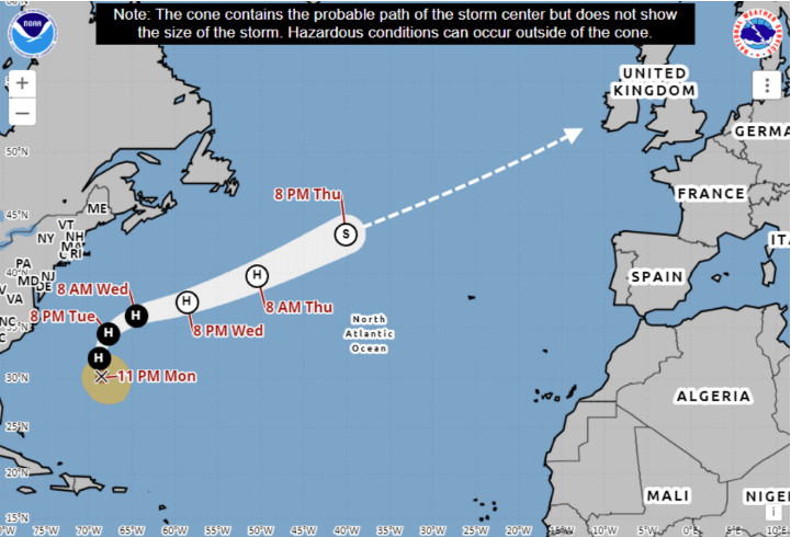 Η επερχόμενη καταιγίδα προέρχεται από τον τυφώνα Humberto, που βρίσκεται κοντά στις Βερμούδες, ο οποίος μεταβαίνει σε εξωτροπικό κυκλώνα. Ο τυφώνας Humberto ήταν η δεύτερη καταιγίδα κατηγορίας 5 της περιόδου των τυφώνων στον Ατλαντικό και είχε μια εντυπωσιακή δορυφορική παρουσίαση. Η παρακάτω εικόνα τραβήχτηκε από τον Διεθνή Διαστημικό Σταθμό (ISS) το Σάββατο.