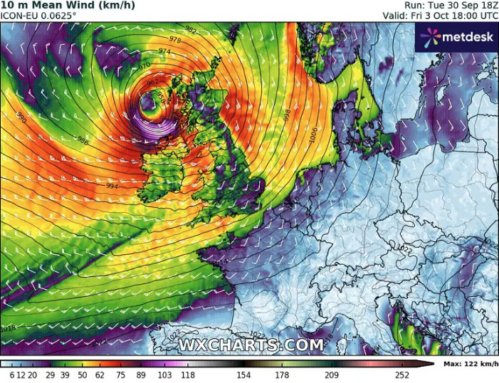 Σύμφωνα με τα τελευταία μετεωρολογικά μοντέλα, ο αντίκτυπος θα μπορούσε να είναι σημαντικός. Με σφοδρούς ανέμους και σημαντικά ύψη κύματος σε όλη την Ιρλανδία και τη Σκωτία, και στη συνέχεια να κινείται προς τη Βόρεια Θάλασσα το Σάββατο.