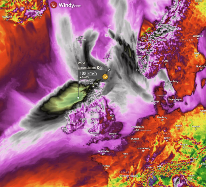 Το σύστημα προβλέπεται να επεκταθεί στη Δυτική Ευρώπη μέχρι αργά την Παρασκευή. Το πιο πιθανό σενάριο περιλαμβάνει την επίθεση της ισχυρής καταιγίδας στη Βόρεια Ιρλανδία και τη Σκωτία.