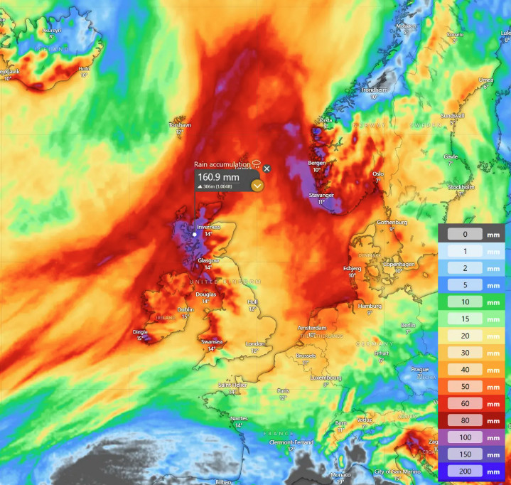 Τοπικά, είναι πιθανό να πέσουν περισσότερα από 150 χιλιοστά βροχής σε όλη τη Σκωτία από απόψε μέχρι το πρωί της Κυριακής.