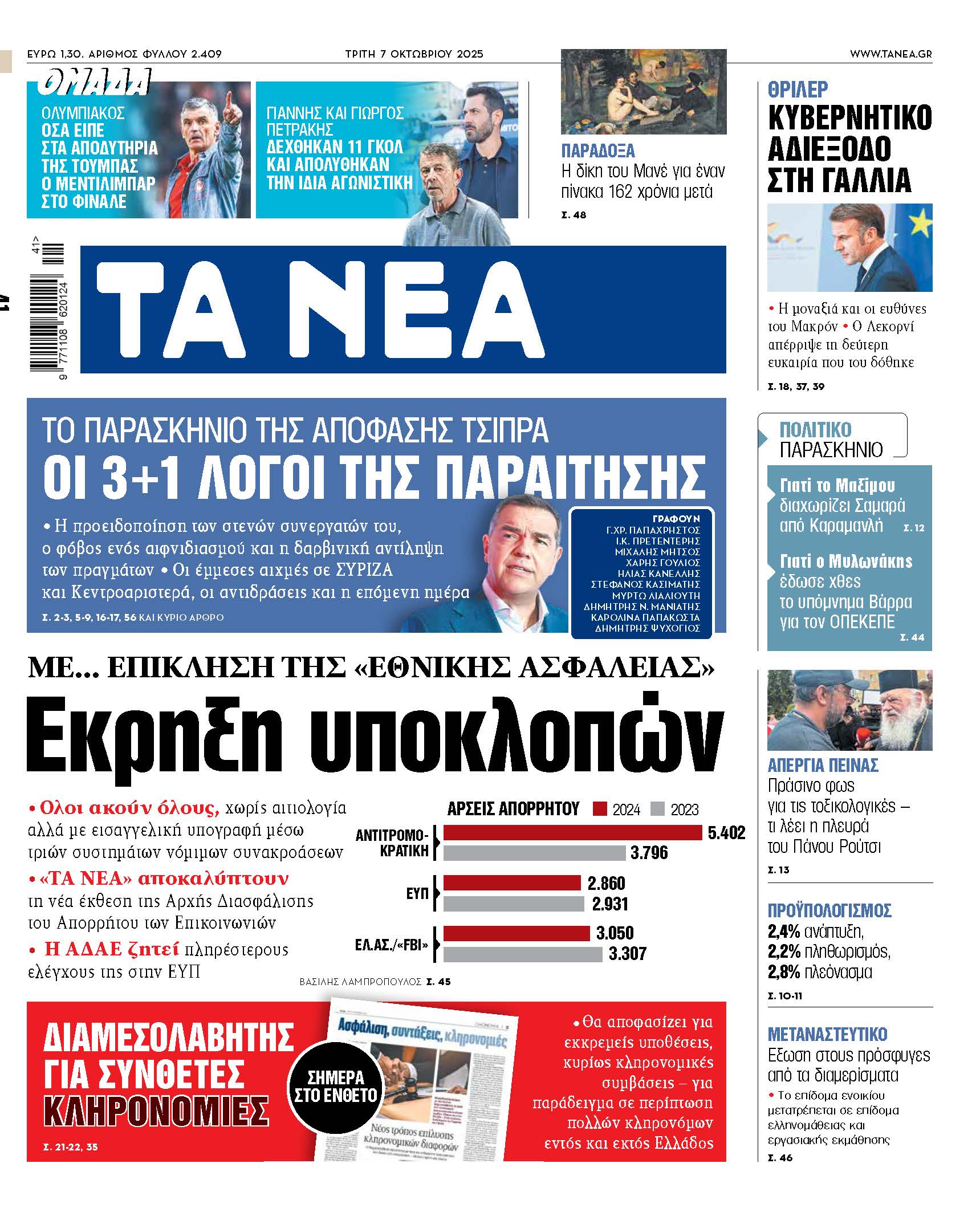 ΕλλάδαΕλλάδαΠολιτικήΚόσμοςΣτα «Νέα» της Τρίτης: Εκρηξη υποκλοπώνΟλοι ακούν όλους, χωρίς αιτιολογία αλλά με εισαγγελική υπογραφή μέσω τριών συστημάτων νόμιμων συνακροάσεων • «ΤΑ ΝΕΑ» αποκαλύπτουν τη νέα έκθεση της Αρχής Διασφάλισης του Απορρήτου των Επικοινωνιών TANEA Newsroom 07/10/2025, 06:00 Share Share Facebook Twitter Linked in Messenger Whatsapp Telegram e-mail Τελευταία Νέα 23:45 Ποδόσφαιρο Η δραματική διαδικασία των πέναλτι που έφερε την πρόκριση στον Παναθηναϊκό 23:44 Κόσμος Τουρκία: Κατηγορεί με επιστολή στον ΟΗΕ Ελλάδα, Κύπρο, Αίγυπτο για ΑΟΖ και υπερασπίζεται το τουρκολιβυκό μνημόνιο 23:39 Μπάσκετ Ρεάλ Μαδρίτης – Μπάγερν 93-70: Εντυπωσιακός «περίπατος» των Ισπανών 23:35 Κόσμος Βραζιλία: Στους 55 οι νεκροί από τις πλημμύρεςΔιαβάστε στα «ΝΕΑ» της Τρίτης:Με… επίκληση της «Εθνικής Ασφάλειας»Εκρηξη υποκλοπώνΤο παρασκήνιο της απόφασης ΤσίπραΟι 3+1 λόγοι της παραίτησης Σχόλια Περισσότερα σχόλια Γράψτε το σχόλιό σας Απάντηση σε parentID Όνομα 50 /50 Το πεδίο είναι υποχρεωτικό Σχόλιο 2000 /2000 Το πεδίο είναι υποχρεωτικό Post ID Post Title Υποβολή σχολίου Όροι Χρήσης. Το site προστατεύεται από reCAPTCHA, ισχύουν Πολιτική Απορρήτου & Όροι Χρήσης της Google. Τελευταία ΝέαΗ δραματική διαδικασία των πέναλτι που έφερε την πρόκριση στον ΠαναθηναϊκόΤουρκία: Κατηγορεί με επιστολή στον ΟΗΕ Ελλάδα, Κύπρο, Αίγυπτο για ΑΟΖ και υπερασπίζεται το τουρκολιβυκό μνημόνιοΡεάλ Μαδρίτης – Μπάγερν 93-70: Εντυπωσιακός «περίπατος» των Ισπανών
