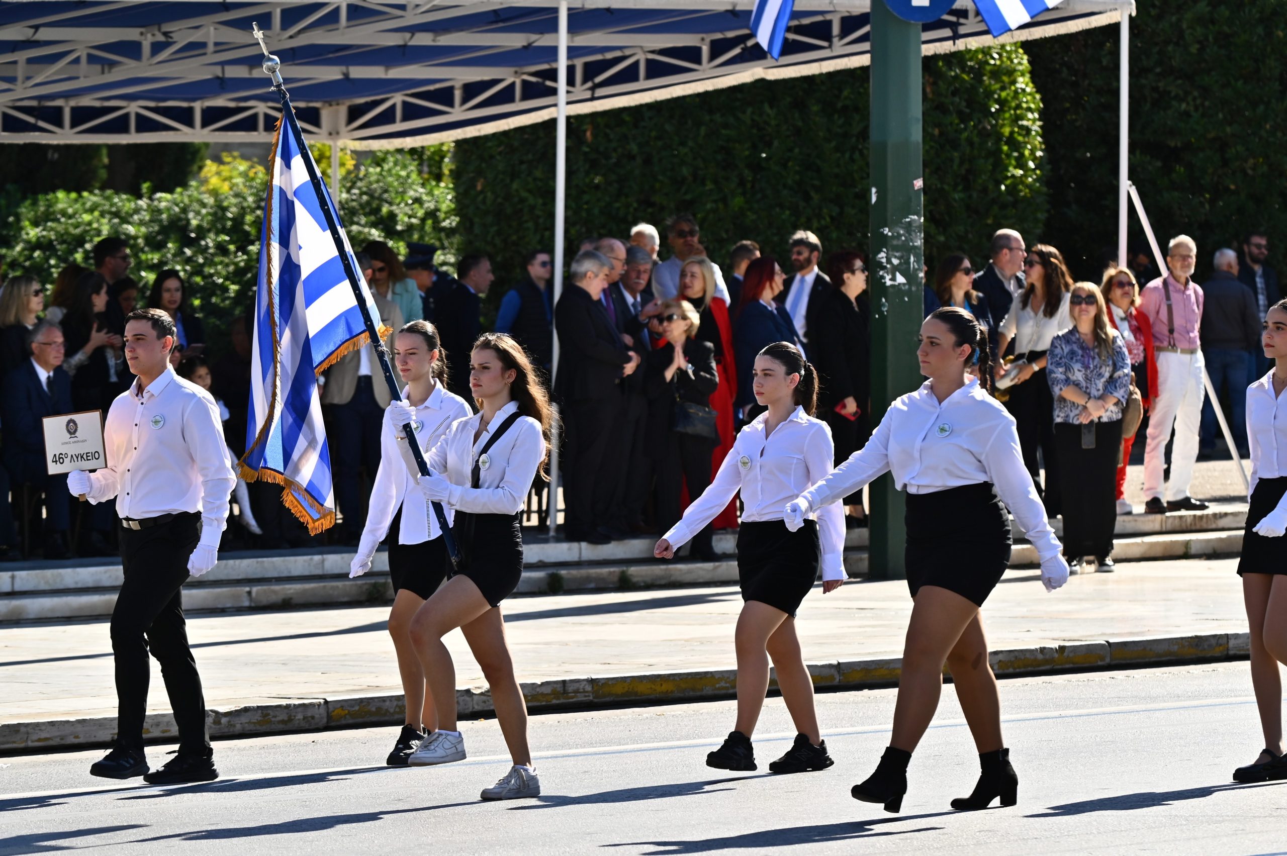 Με λαμπρότητα πραγματοποιήθηκε η μαθητική παρέλαση στην Αθήνα για τον εορτασμό της Εθνικής Επετείου της 28ης Οκτωβρίου, με πλήθος κόσμου να κατακλύζει το κέντρο της πόλης.