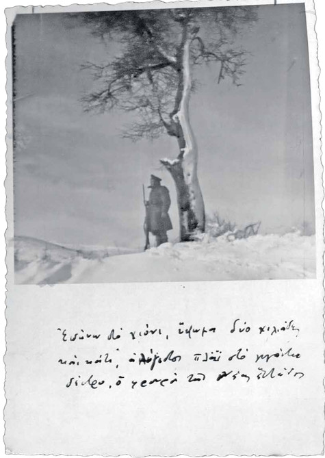 «Επάνω στο χιόνι, ύψωμα δύο χιλιάδες και κάτι, αλύγιστος πλάι στο γιγάντιο δένδρο, ο φρουρός της νέας Ελλάδος» αναγράφεται στη φωτογραφία της εποχής