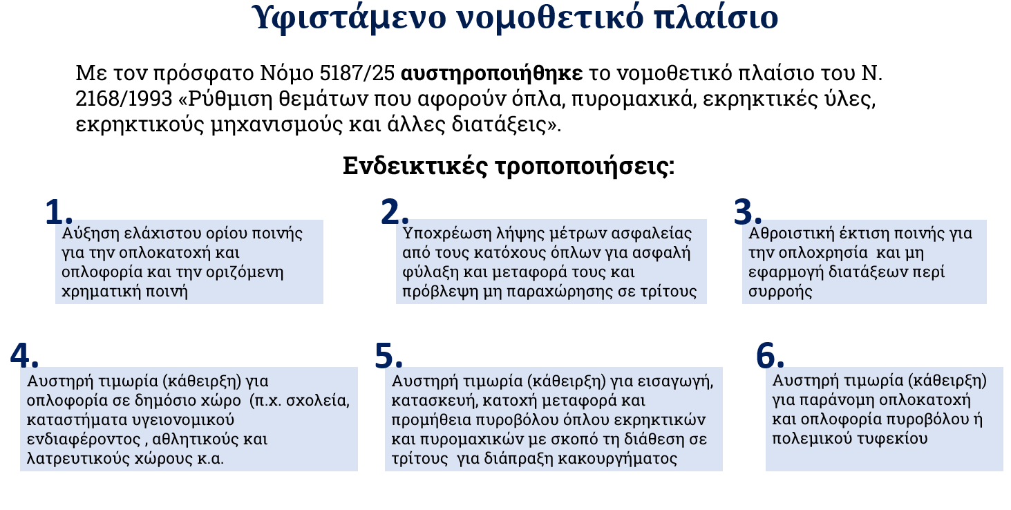 5. Αναθεώρηση του πλαισίου και επανεξέταση έκδοσης αδειών σκοποβολής.