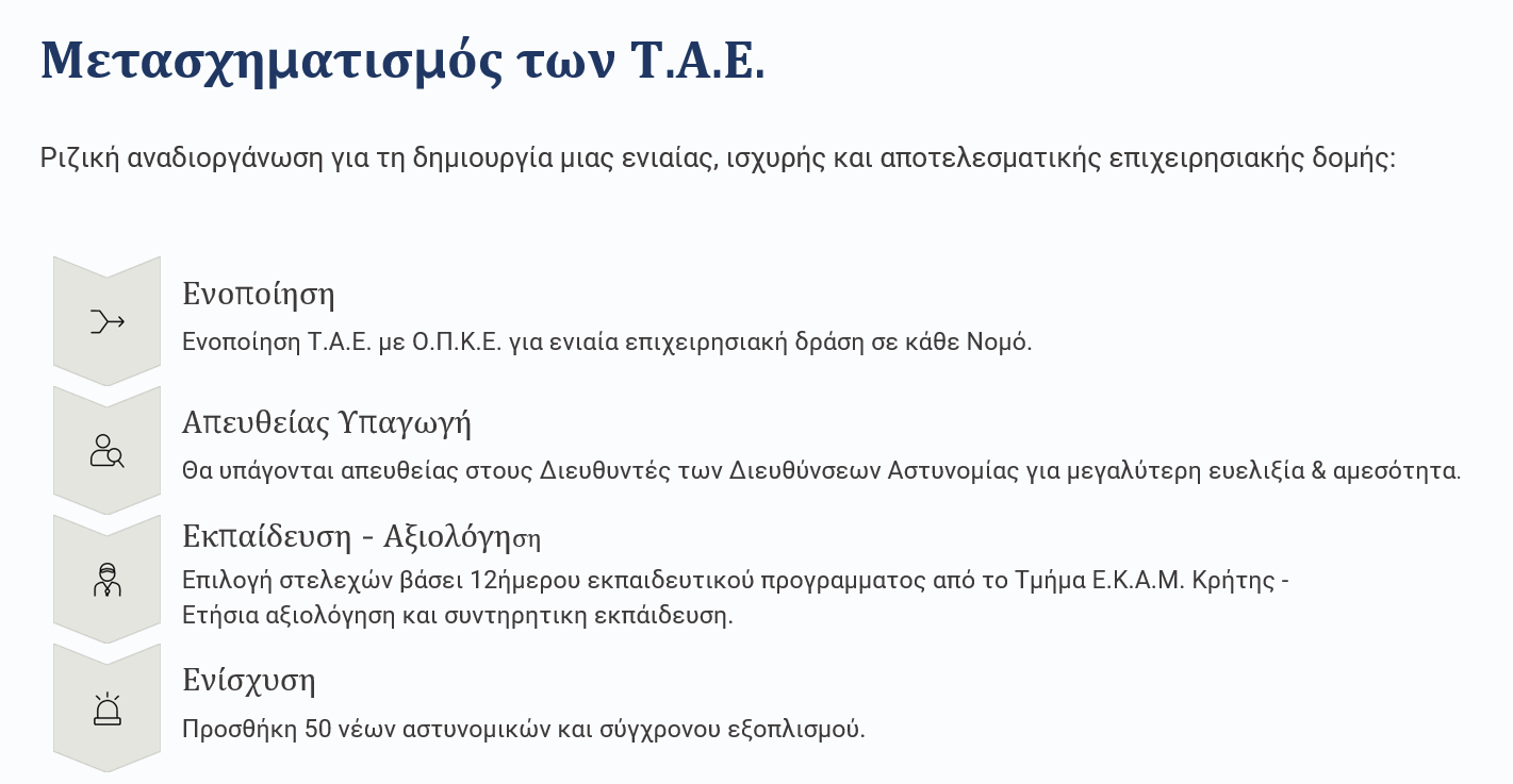Μέτρα αναδιάρθρωσης των αστυνομικών δυνάμεων