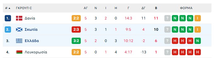 Η βαθμολογία του ομίλου της Εθνικής μετά την αποψινή αναμέτρηση: