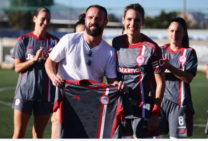 Λίγο πριν από τη σέντρα, οι παίκτριες του Θρύλου τίμησαν τον Ματιέ Βαλμπουενά, προσφέροντάς του φανέλα με τις υπογραφές τους.