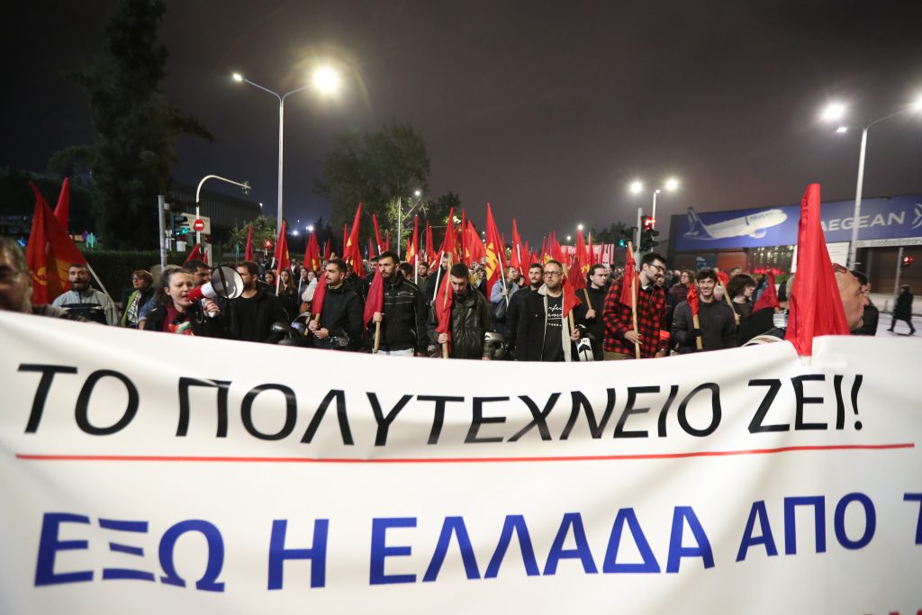 Η πορεία των φοιτητικών συλλόγων και των οργανώσεων προς τιμήν της επετείου της εξέγερσης της 17ης Νοέμβρη στο Πολυτεχνείο ολοκληρώθηκε με συγκέντρωση έξω από την αμερικανική πρεσβεία.