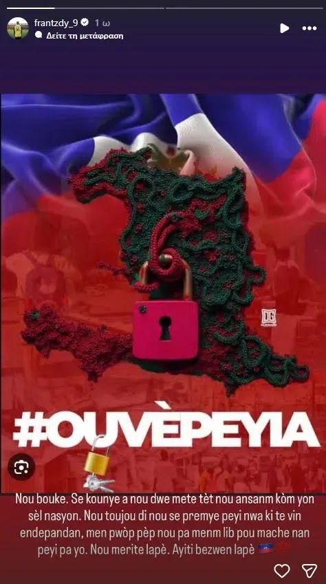 Μετά την ιστορική πρόκριση της Αϊτής στο Παγκόσμιο Κύπελλο του 2026, ο Φραντζί Πιερό, επιθετικός της ΑΕΚ, εξέφρασε την αγωνία του για την κατάσταση που επικρατεί στη χώρα του. Μέσα από ανάρτησή του στο Instagram, ο διεθνής ποδοσφαιριστής απηύθυνε έκκληση για ειρήνη και ενότητα, τονίζοντας την ανάγκη οι πολίτες να ζουν με ασφάλεια στη χώρα τους.