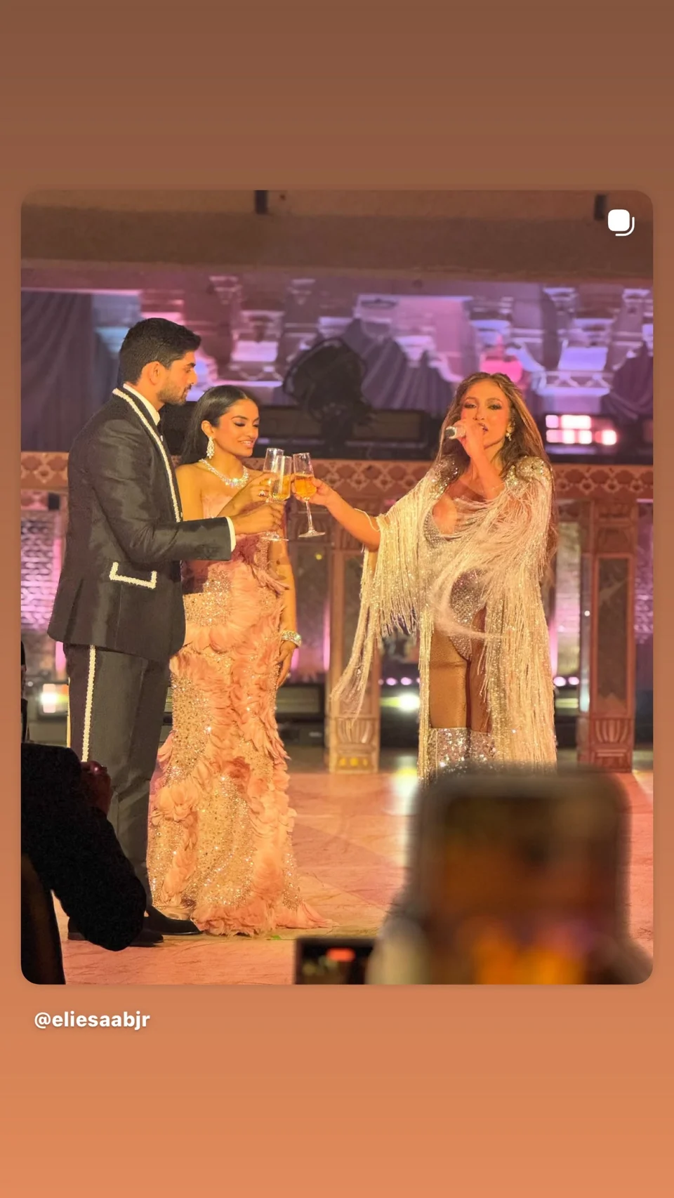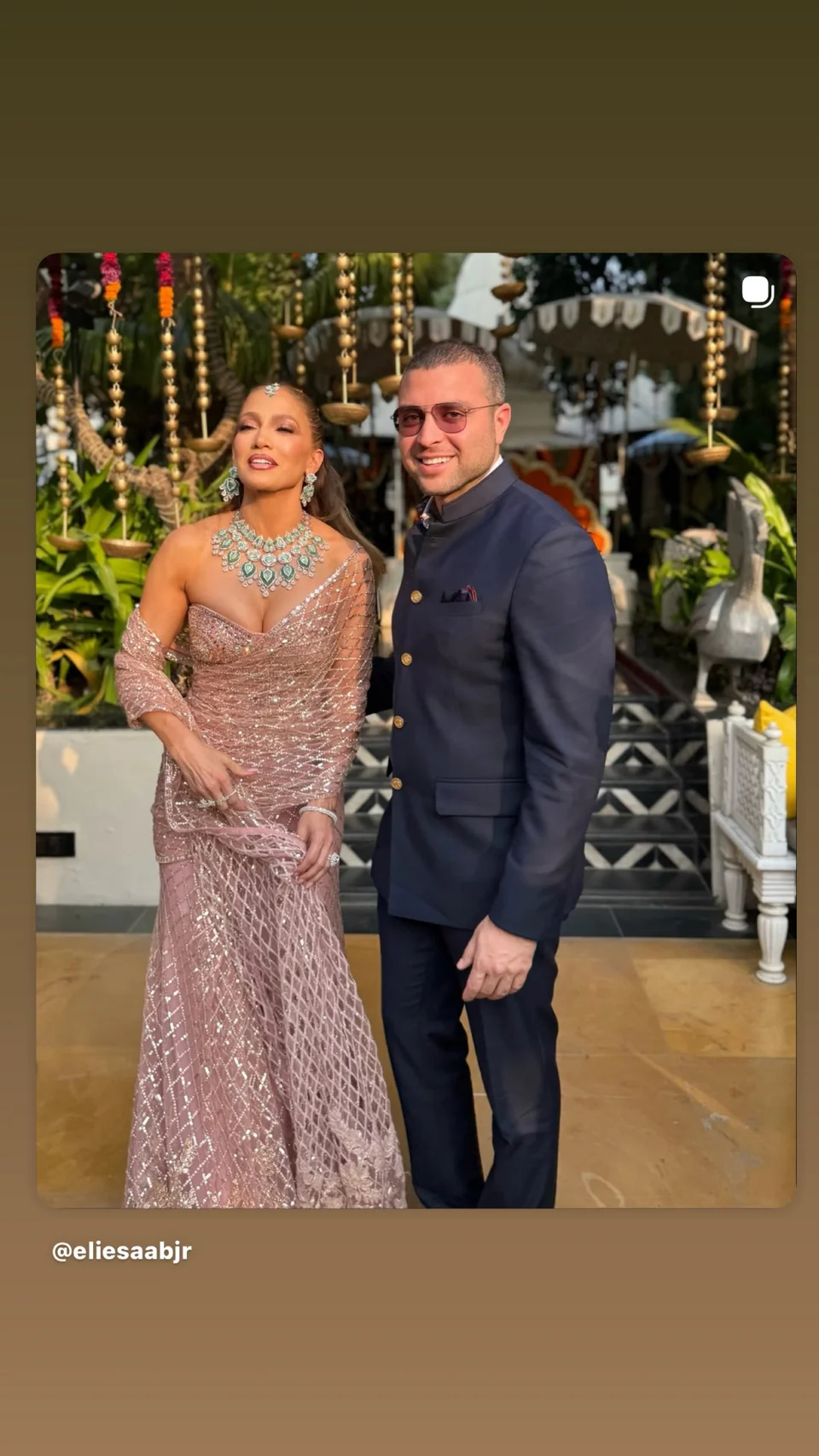 Η νύφη και η Τζένιφερ Λόπεζ ντύθηκαν διά χειρός Elie Saab, ο γιος του οποίου ήταν καλεσμένος στον γάμο.