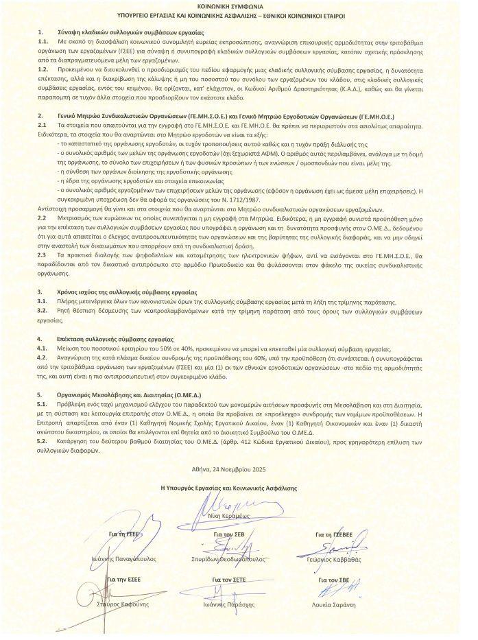 Η έκδοση του Σχεδίου Δράσης για την ενίσχυση των Συλλογικών Συμβάσεων Εργασίας θα πραγματοποιηθεί εντός του Δεκεμβρίου, ενώ η Κοινωνική Συμφωνία θα νομοθετηθεί στις αρχές του 2026.
