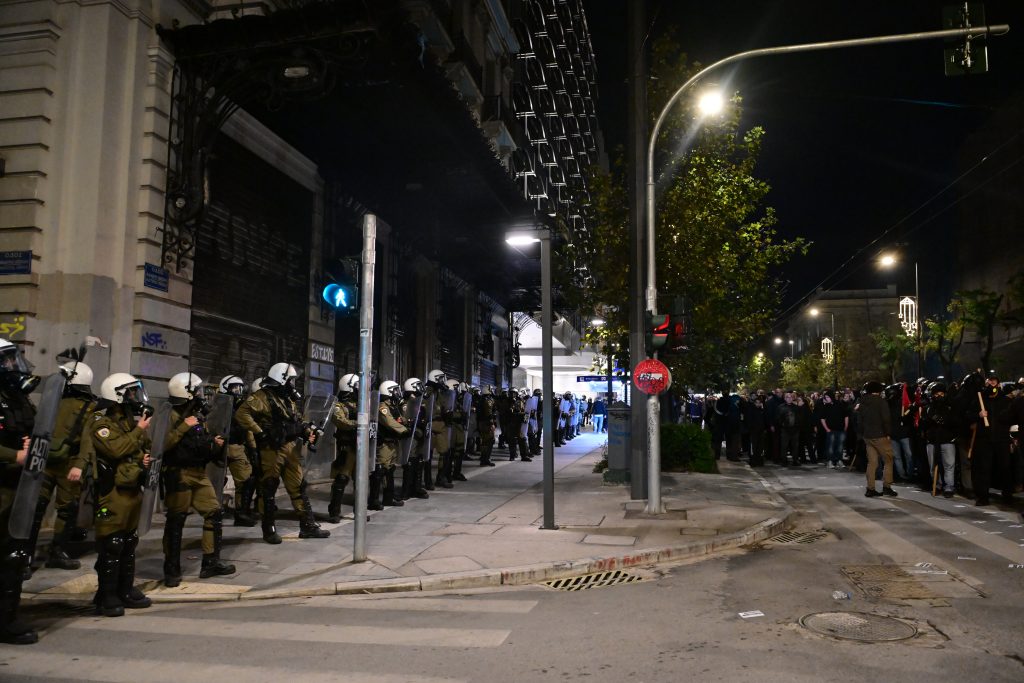 Ένταση επικρατεί στο κέντρο της Αθήνας κατά την πορεία στη μνήμη του Αλεξάνδρου Γρηγορόπουλου με αφορμή τη συμπλήρωση 17 χρόνων από τη δολοφονία του.