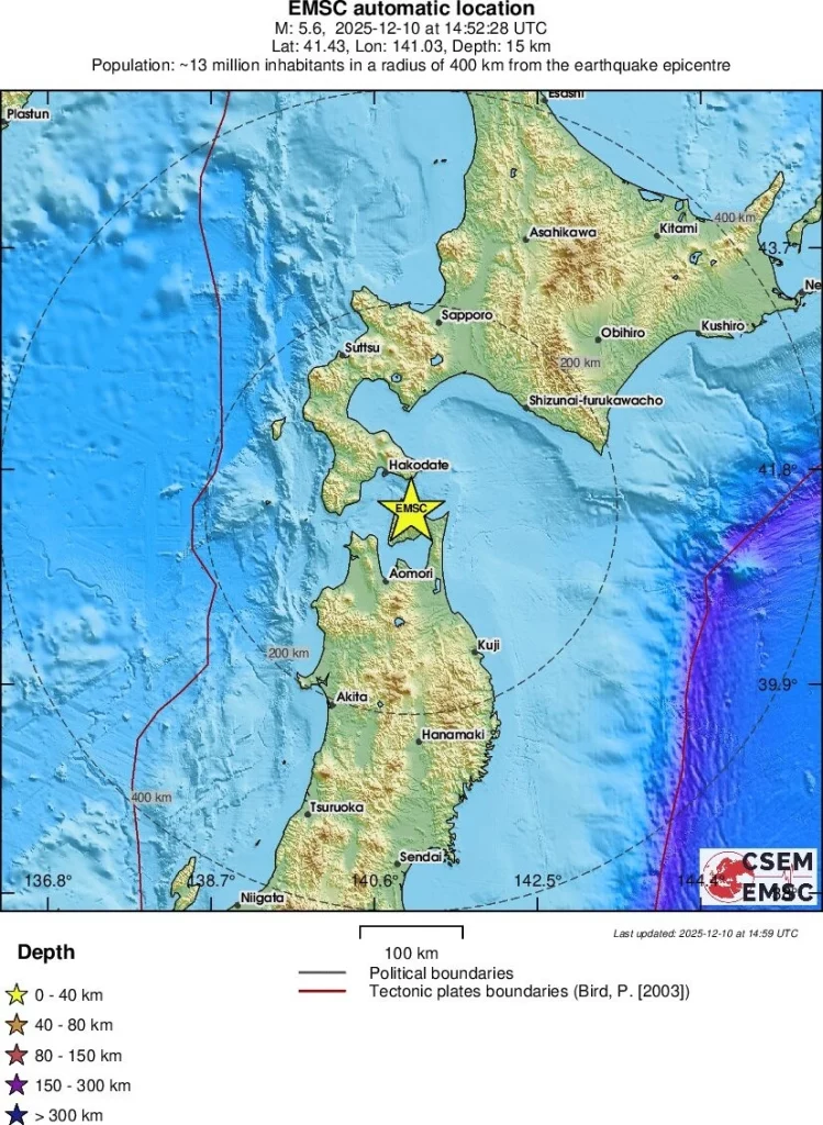 Σεισμική δόνηση μεγέθους 6,5 Ρίχτερ σημειώθηκε στο νησί Χοκάιντο, στη βόρεια Ιαπωνία, με εστιακό βάθος 57 χιλιόμετρα, σύμφωνα με το Ευρωμεσογειακό Σεισμολογικό Κέντρο.