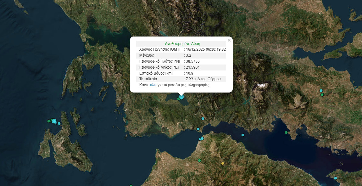 Παράλληλα, σύμφωνα με τη μέτρηση του Ευρωμεσογειακού Σεισμολογικού Κέντρου, ο σεισμός καταγράφηκε με μέγεθος 3,5 Ρίχτερ. Το επίκεντρο, σύμφωνα με τα στοιχεία του Κέντρου, βρισκόταν περίπου 12 χιλιόμετρα ανατολικά από το Παναιτώλιο.