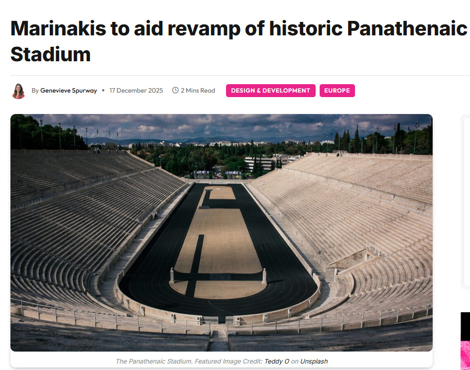 «Ο Μαρινάκης θα βοηθήσει στην ανακαίνιση του ιστορικού Παναθηναϊκού Σταδίου» γράφει ο ιστότοπος The Stadium Business.