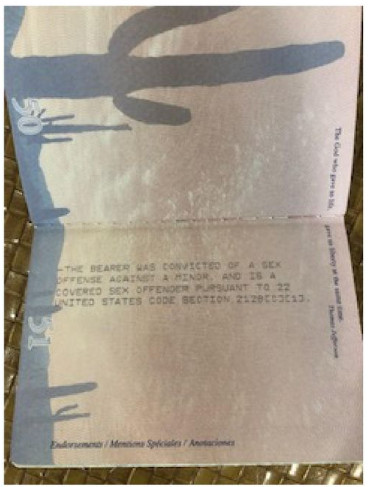 Μεταξύ των υλικού περιλαμβάνεται διαβατήριο του Μεξικού, στο οποίο αναγράφεται ότι «ο κάτοχος καταδικάστηκε για σεξουαλικό αδίκημα κατά ανηλίκου». Δεν έχει γίνει γνωστό, σε ποιον ανήκει το έγγραφο ούτε πότε εκδόθηκε. Επίσης, στη δημοσιότητα δόθηκαν οι σελίδες με τα στοιχεία του Επστάιν από το διαβατήριό του.