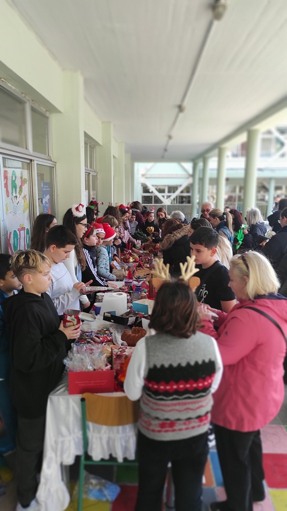 «Πελάτες» συμμαθητές και μαμάδες-μπαμπάδες απ’ όλες τις τάξεις: Γλυκίσματα, κέικ, βραχιολάκια, ζωγραφισμένα μπουκάλια και ξύλα, φυτά-γούρια, μπρελόκ κ.α. όμορφες κατασκευές γέμισαν τους πάγκους στο προαύλιο του Σχολείου και σε μια ώρα… ξεπούλησαν!