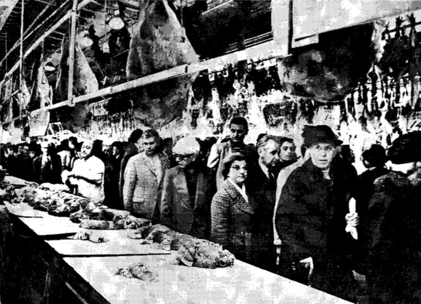 «Χθεσινή πρωινή φωτογραφία στην κεντρική αγορά της Αθήνας. Μπροστά στις γεμάτες και στολισμένες προθήκες των κρεωπωλείων, οι Αθηναίοι περνούν σε «πυκνή φάλαγγα», ερευνούν, ρωτούν και αγοράζουν φτηνά ή ακριβά κρέατα για τη χριστουγεννιάτικη πανδαισία. Τα πρωτεία έχει η παραδοσιακή γαλαπούλα που σε υπερπροσφορά έδινε τον τόνο της χριστουγεννιάτικης αγοράς».