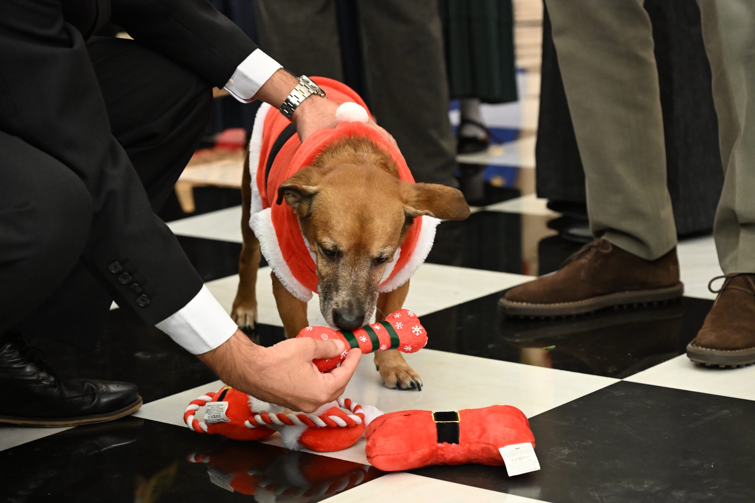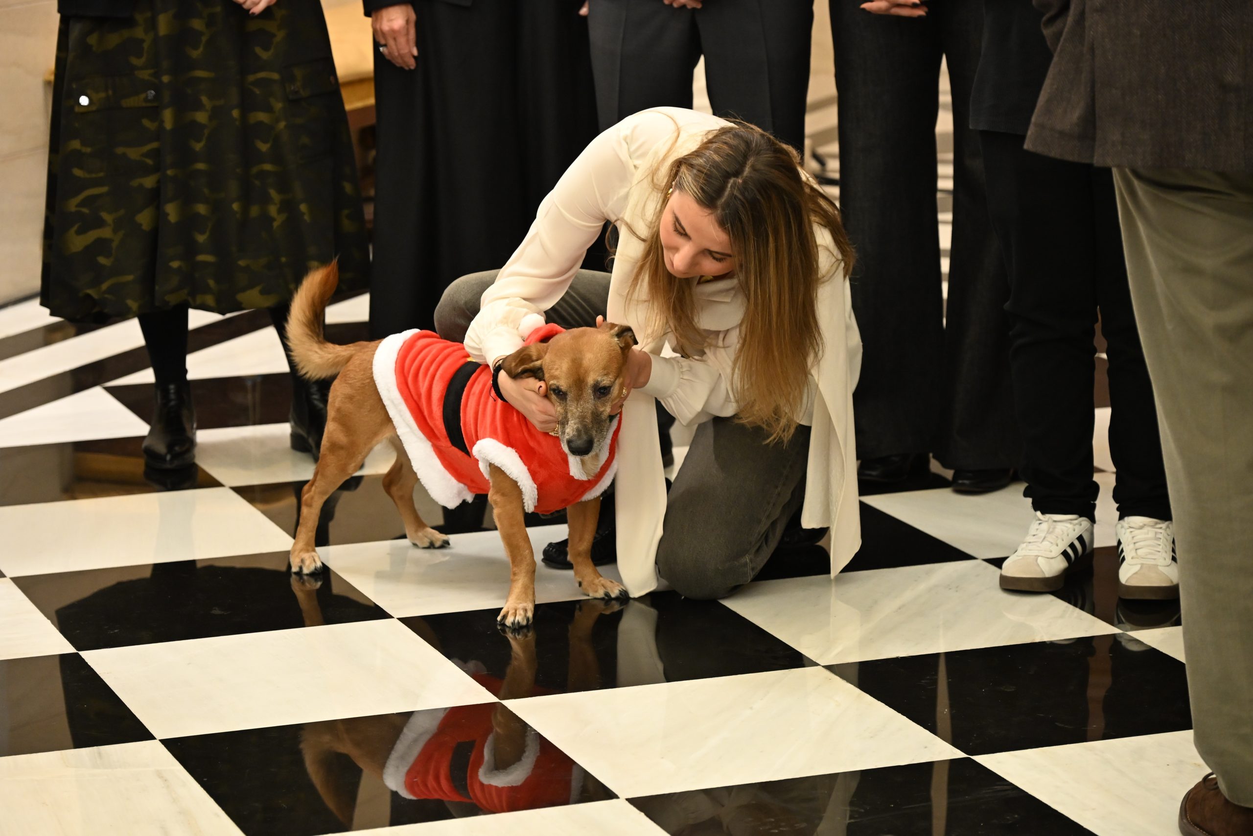 Κατά την παραμονή των Χριστουγέννων, καθώς μαθητές και πολιτιστικά σχήματα συγκεντρώθηκαν στο Μέγαρο Μαξίμου για τα παραδοσιακά χριστουγεννιάτικα κάλαντα, μια… τετράποδη παρουσία έκλεψε τις καρδιές των παρευρισκόμενων: ο Πίνατ, ο αγαπημένος σκύλος του πρωθυπουργού Κυριάκου Μητσοτάκη.