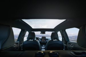 - τη γυάλινη πανοραμική ηλιοροφή νέας γενιάς «Solarbay», που χρησιμοποιεί τεχνολογία PDLC και μετατρέπεται σε αδιαφανή χωρίς τη χρήση κουρτίνας,