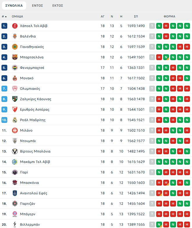 Από την άλλη πλευρά, η Βίρτους γνώρισε ακόμη μία ήττα και υποχώρησε στο 8-10, έχοντας πλέον το ίδιο ρεκόρ με τη Μακάμπι Τελ Αβίβ.