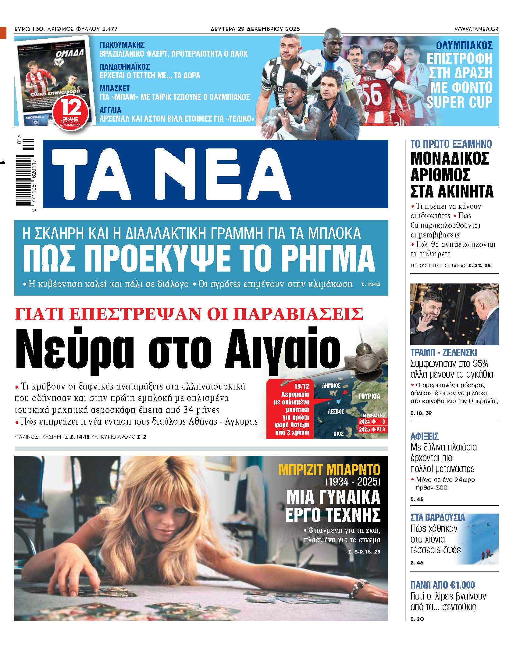 Διαβάστε στα «ΝΕΑ» της Δευτέρας: Νεύρα στο Αιγαίο