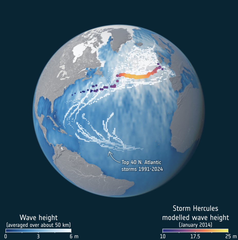 Η έρευνα, που βασίστηκε σε δεδομένα του νέου γαλλοαμερικανικού δορυφόρου SWOT (Surface Water and Ocean Topography) και του προγράμματος CCI Sea State της ESA, ανέλυσε στοιχεία από το 1991. Οι επιστήμονες διαπίστωσαν ότι η Καταιγίδα Eddie ήταν η ισχυρότερη της τελευταίας δεκαετίας, ενώ το ρεκόρ των τελευταίων 34 ετών εξακολουθεί να ανήκει στην Καταιγίδα Hercules του 2014, όταν κύματα 23 μέτρων έπληξαν περιοχές από το Μαρόκο έως την Ιρλανδία.