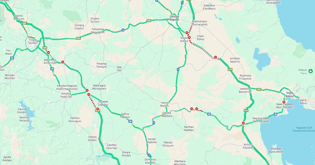 Με νεότερη απόφαση της Διεύθυνσης Αστυνομίας Λάρισας, λόγω των αγροτικών κινητοποιήσεων επί του Αυτοκινητόδρομου ΠΑΘΕ στο ύψος του ανισόπεδου κόμβου Νίκαιας, από τις 09:10 σήμερα (30-12-2025) και για όσο διάστημα απαιτηθεί, τίθενται σε ισχύ προσωρινές κυκλοφοριακές ρυθμίσεις.
