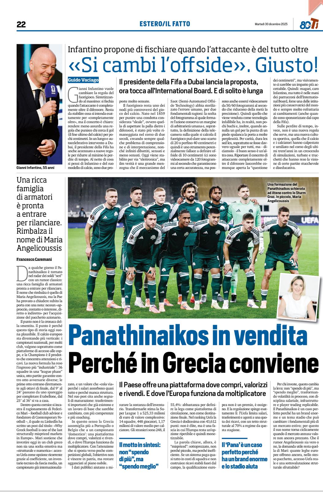 Όπως τονίζει η Tuttosport, η Ελλάδα προσφέρει μια πλατφόρμα όπου μπορείς να αγοράσεις, να αναπτύξεις και να μεταπωλήσεις και όπου η Ευρώπη λειτουργεί ως πολλαπλασιαστής. Σημειώνει ακόμα ότι το σύνθημα, συνοπτικά, δεν είναι «ξοδεύω περισσότερα», αλλά «ξοδεύω καλύτερα». Και η Ελλάδα, σήμερα, αποτελεί ένα από τα πιο ενδιαφέροντα εργαστήρια του ευρωπαϊκού ποδοσφαίρου.