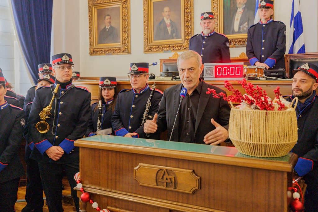 Την εορταστική ατμόσφαιρα πλαισίωσε μουσικά η Φιλαρμονική Ορχήστρα Πνευστών του Δήμου Πειραιά, η οποία παρουσίασε εορταστικό πρόγραμμα, προσδίδοντας ξεχωριστό τόνο στην αίθουσα του Δημοτικού Συμβουλίου.