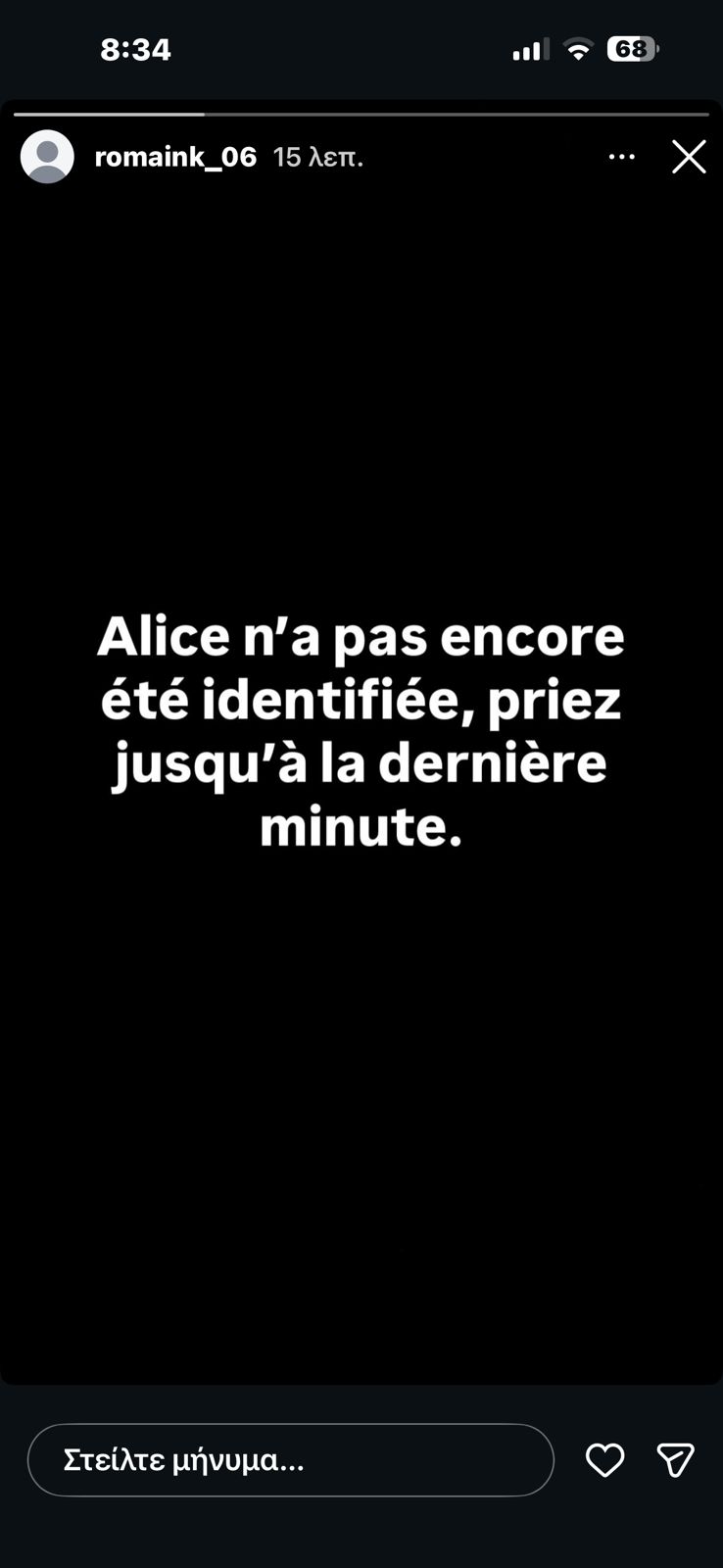 «Υπάρχει πολλή αγωνία, σύγχυση και άγχος. Αλλά είμαι και λίγο ήσυχος, γιατί βλέπω, πως το να έχεις νέα είναι ασήμαντο από μόνο του, επειδή κανείς δεν είχε νεότερα για τους δικούς τους. Προσπαθήσαμε να μπούμε στον λογαριασμό της στο Snapchat, για να δούμε τα τελευταία βίντεο που τράβηξε, για να καταλάβουμε που βρισκόταν μέσα στο μαγαζί», ανέφερε ο Ρόμεν Καλλέργης. Ο ίδιος προχώρησε το βράδυ της Παρασκευής σε μία δραματική ανάρτηση, στην οπόία αναφέρει: ««Η Αλίκη δεν έχει ακόμη ταυτοποιηθεί, προσευχηθείτε γι’ αυτήν».