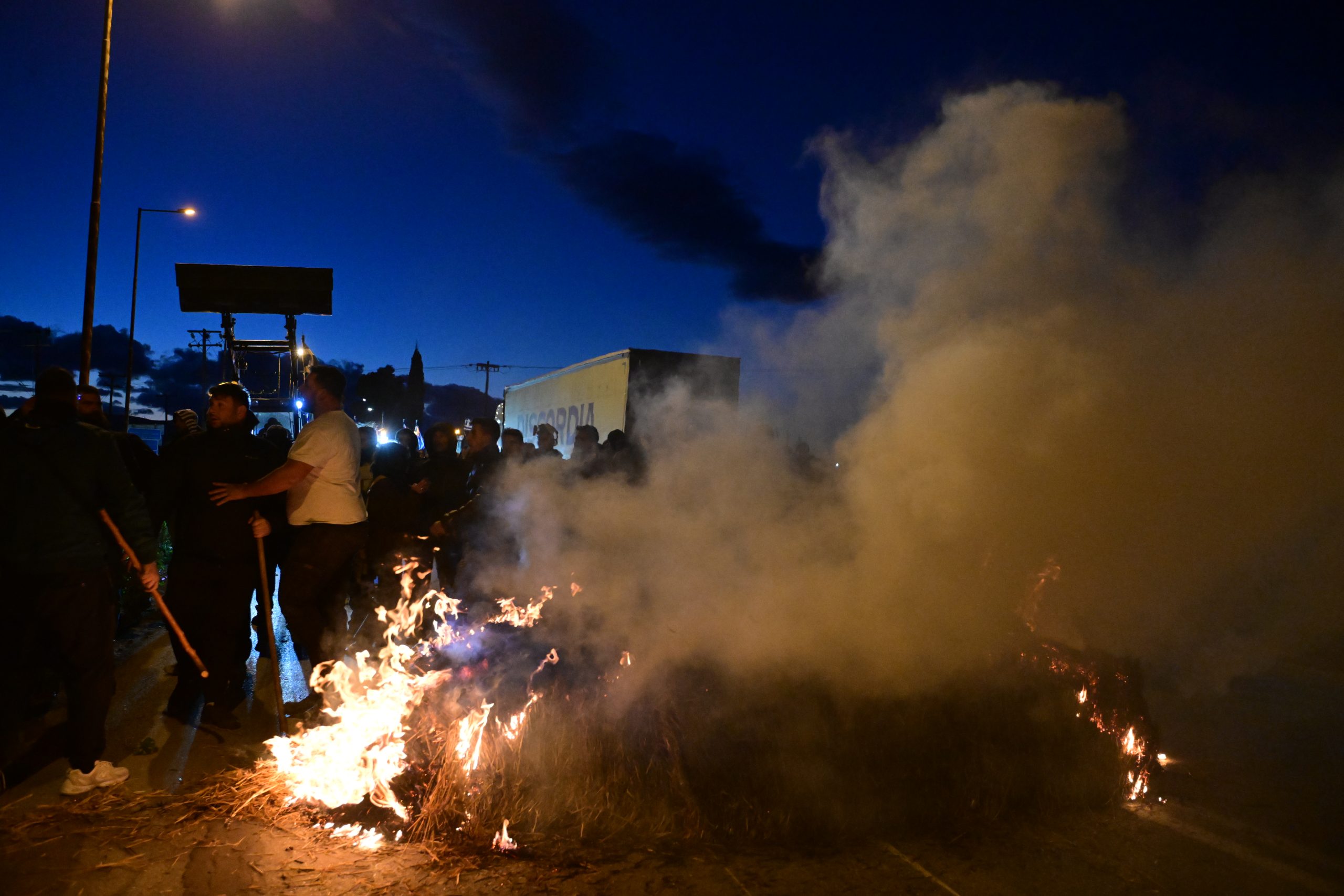 Τεταμένη ατμόσφαιρα επικράτησε το απόγευμα της Πέμπτης στο μπλόκο της Θήβας, όπου αγρότες έβαλαν φωτιά σε άχυρο που είχαν τοποθετήσει στο οδόστρωμα. Στο σημείο βρέθηκαν αστυνομικές δυνάμεις, με την ΕΛ.ΑΣ. να ζητά από τους συγκεντρωμένους να απομακρύνουν τα εμπόδια και να ανοίξουν τον δρόμο.