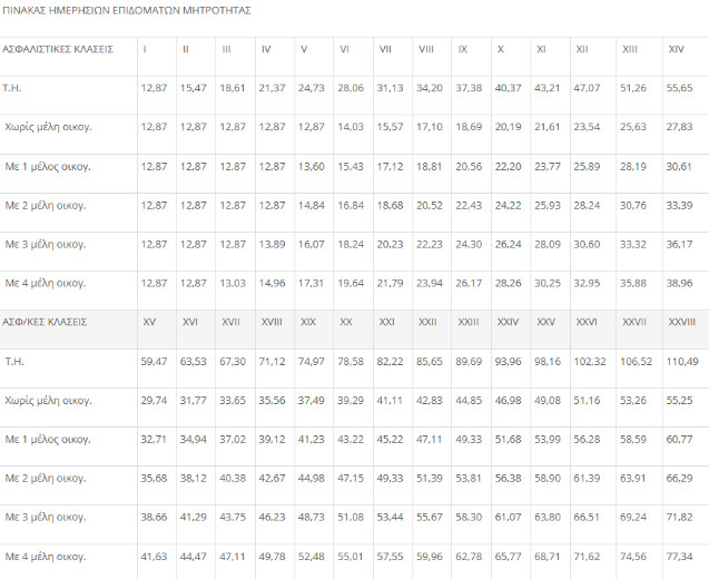 Μετά την αύξηση, το ανώτατο ημερήσιο επίδομα ασθενείας, συμπεριλαμβανομένων των προσαυξήσεων λόγω οικογενειακών βαρών, διαμορφώνεται ως εξής: