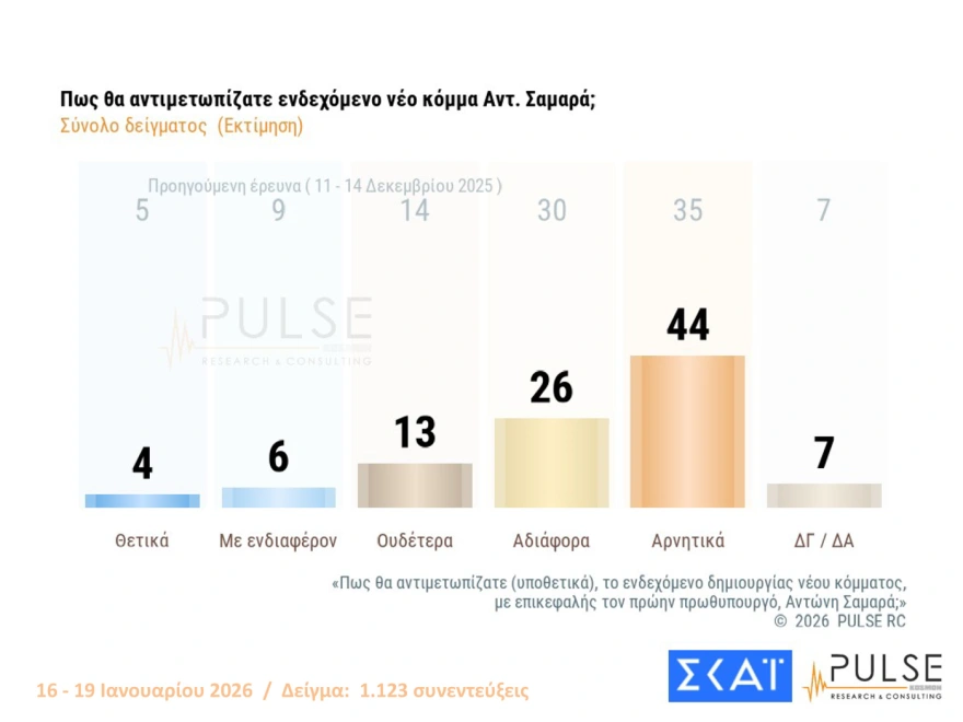Στο 10% (από 14% τον Δεκέμβριο) μειώθηκε το ενδιαφέρον για ένα κόμμα Σαμαρά, καθώς ο πρώην πρωθυπουργός δεν προχώρησε σε κινήσεις τέτοιου είδους.