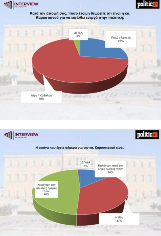 Σχετικά με την ετοιμότητα της Μαρίας Καρυστιανού, το 70% των συμμετεχόντων θεωρεί ότι είναι «λίγο ή καθόλου έτοιμη», ενώ το 27% την κρίνει «πολύ ή αρκετά έτοιμη».