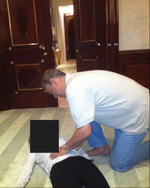 - Οι φωτογραφίες δείχνουν τον πρίγκιπα Άντριου να κάθεται και να σκύβει πάνω από μια γυναίκα που είναι ξαπλωμένη στο πάτωμα, με το πρόσωπο προς τα πάνω και τα χέρια απλωμένα.