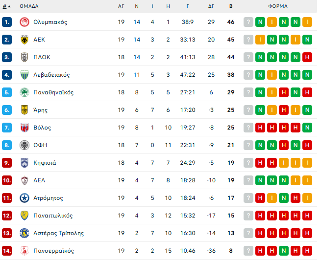 Με αυτήν τη νίκη, οι Πειραιώτες έφτασαν στους 46 βαθμούς, ξεπερνώντας την ΑΕΚ κατά έναν και τον ΠΑΟΚ κατά δύο, με τον Δικέφαλο του Βορρά να έχει ωστόσο παιχνίδι λιγότερο, κόντρα στην Κηφισιά, το οποίο θα διεξαχθεί στις 4 Μαρτίου.