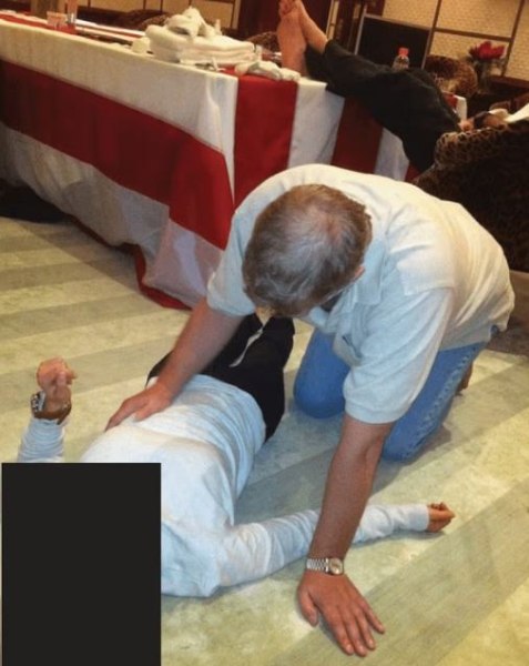 Ο Τζέφρι Επστάιν φαίνεται σε πολυτελή εσωτερικό χώρο να σκύβει πάνω από άγνωστο άτομο.