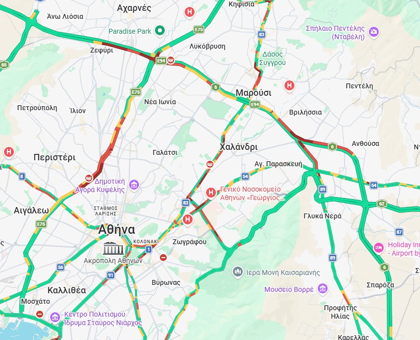 Σημαντικά προβλήματα καταγράφονται επίσης στην Πέτρου Ράλλη, στην Αλεξάνδρας και στη Μεσογείων ενώ καθυστερήσεις σημειώνονται και στην Κατεχάκη -και στα δύο ρεύματα κυκλοφορίας- καθώς και στις Λεωφόρους Κηφισίας και Συγγρού. Με χαμηλές ταχύτητες κινούνται και οι οδηγοί σε Βασ. Σοφίας, Βασ. Κωνσταντίνου, Καλλιρρόης και Λ. Θησεώς.