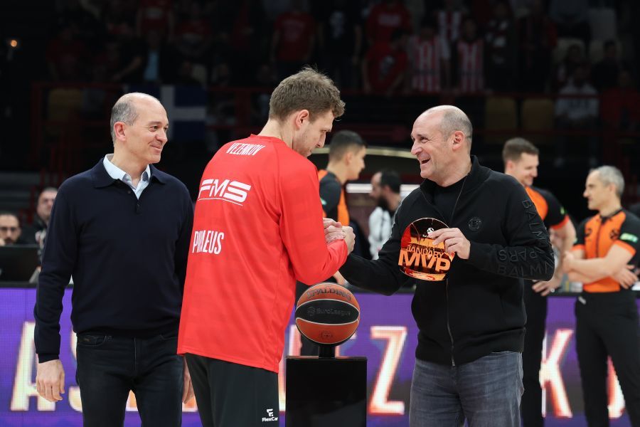 Λίγο πριν από το τζάμπολ της αναμέτρησης του Ολυμπιακού με τη Βίρτους Μπολόνια για την 27η αγωνιστική της EuroLeague, πραγματοποιήθηκε μια ξεχωριστή βράβευση στο ΣΕΦ.