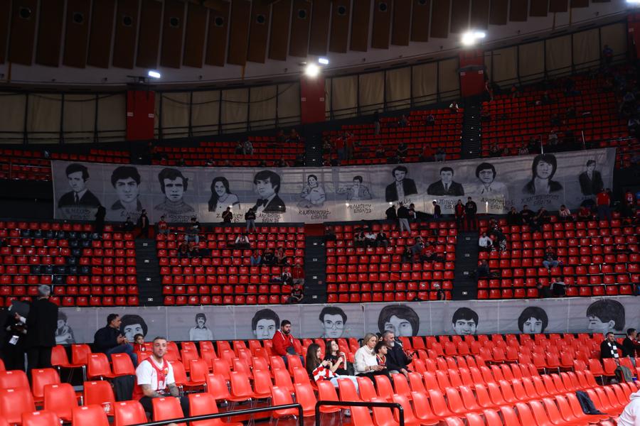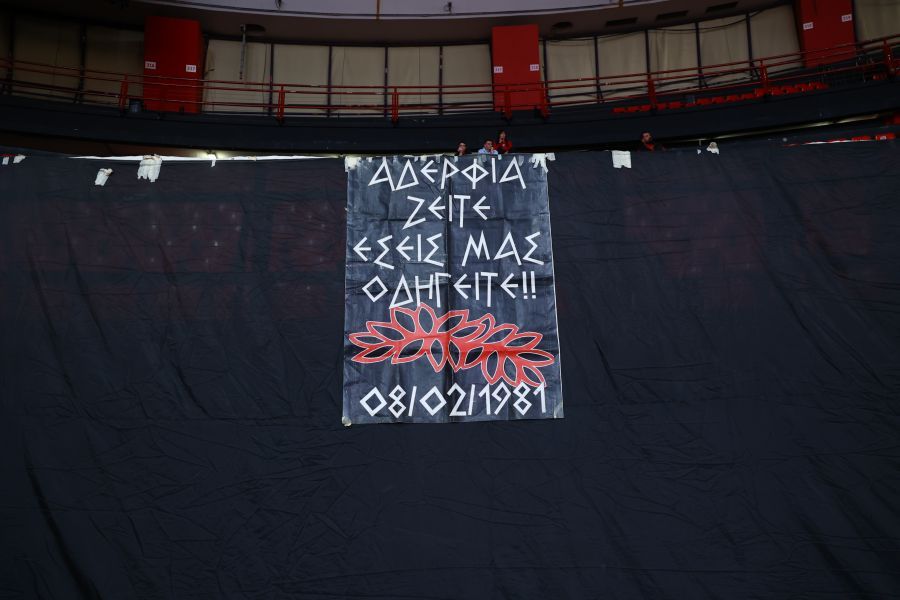 Οι «ερυθρόλευκοι» φιλοξενούν τη Βίρτους το βράδυ της 6ης Φεβρουαρίου (21:15, Novasports Prime, LIVE MatchCenter SPORT24) και λίγο πριν την έναρξη του αγώνα, στις εξέδρες του ΣΕΦ αναρτήθηκαν δύο πανό με τα πρόσωπα των ανθρώπων που έχασαν τη ζωή τους στο τραγικό δυστύχημα της Θύρας 7.