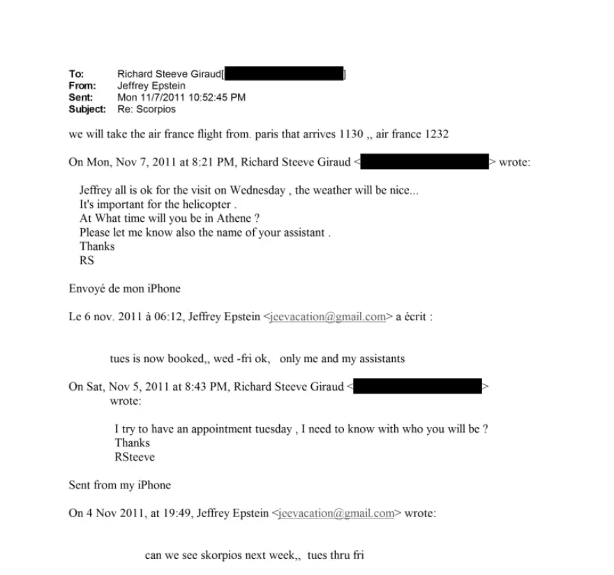 - Ο Τζέφρι Επστάιν είχε εμπλακεί σε συζητήσεις για την αγορά του Σκορπιού, όπως αποκαλύπτεται από δημοσιευμένα έγγραφα.