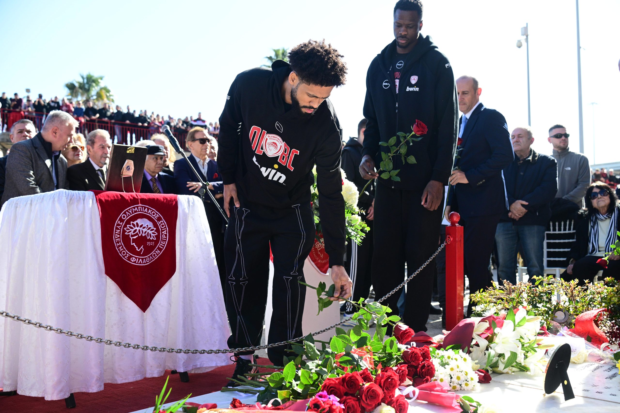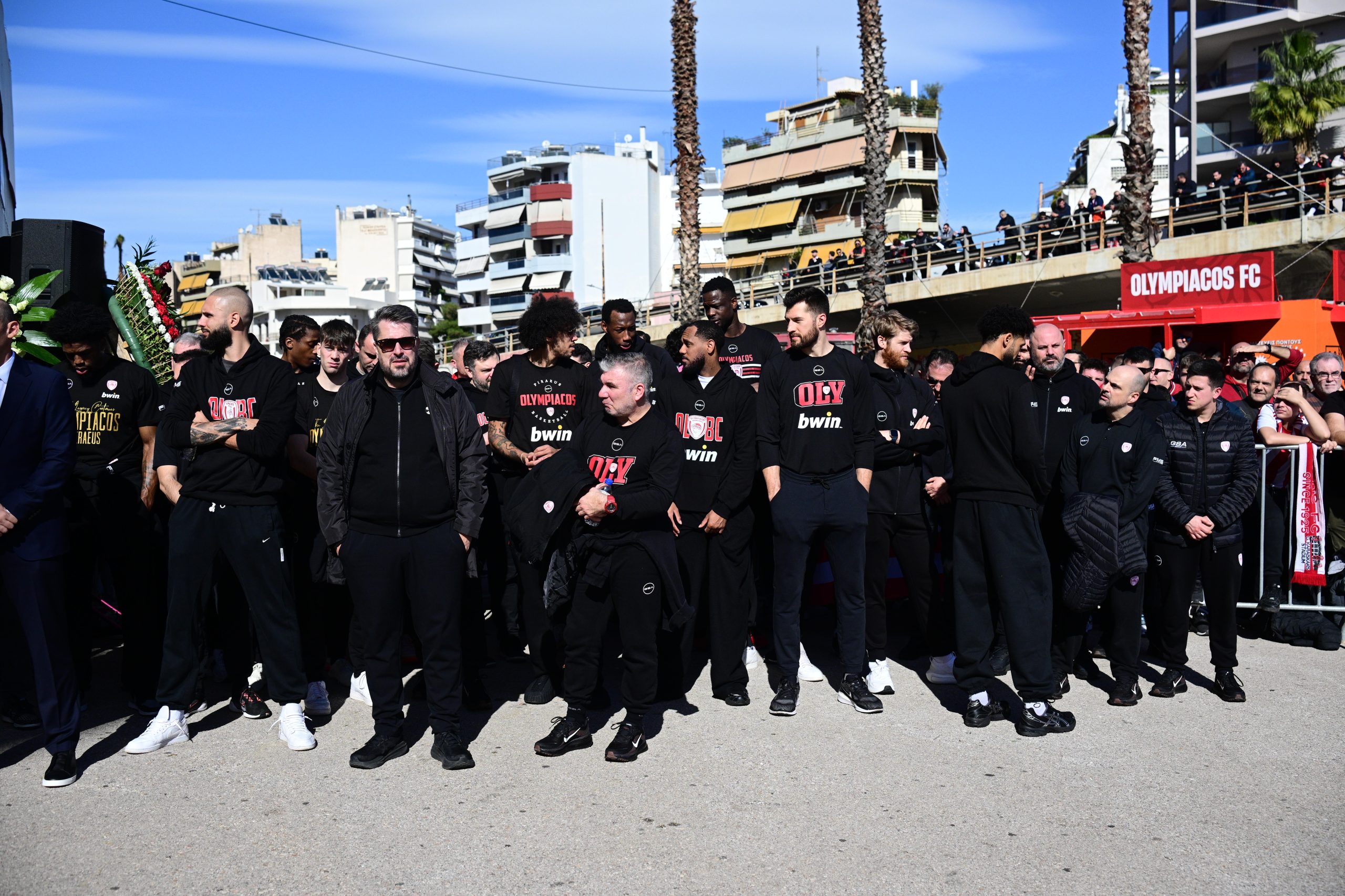 Κάτι ανάλογο έκανε και η ΚΑΕ Ολυμπιακός, με τον Γιώργο Μπαρτζώκα και τους παίκτες του να δίνουν το «παρών» και να τιμούν τα θύματα.
