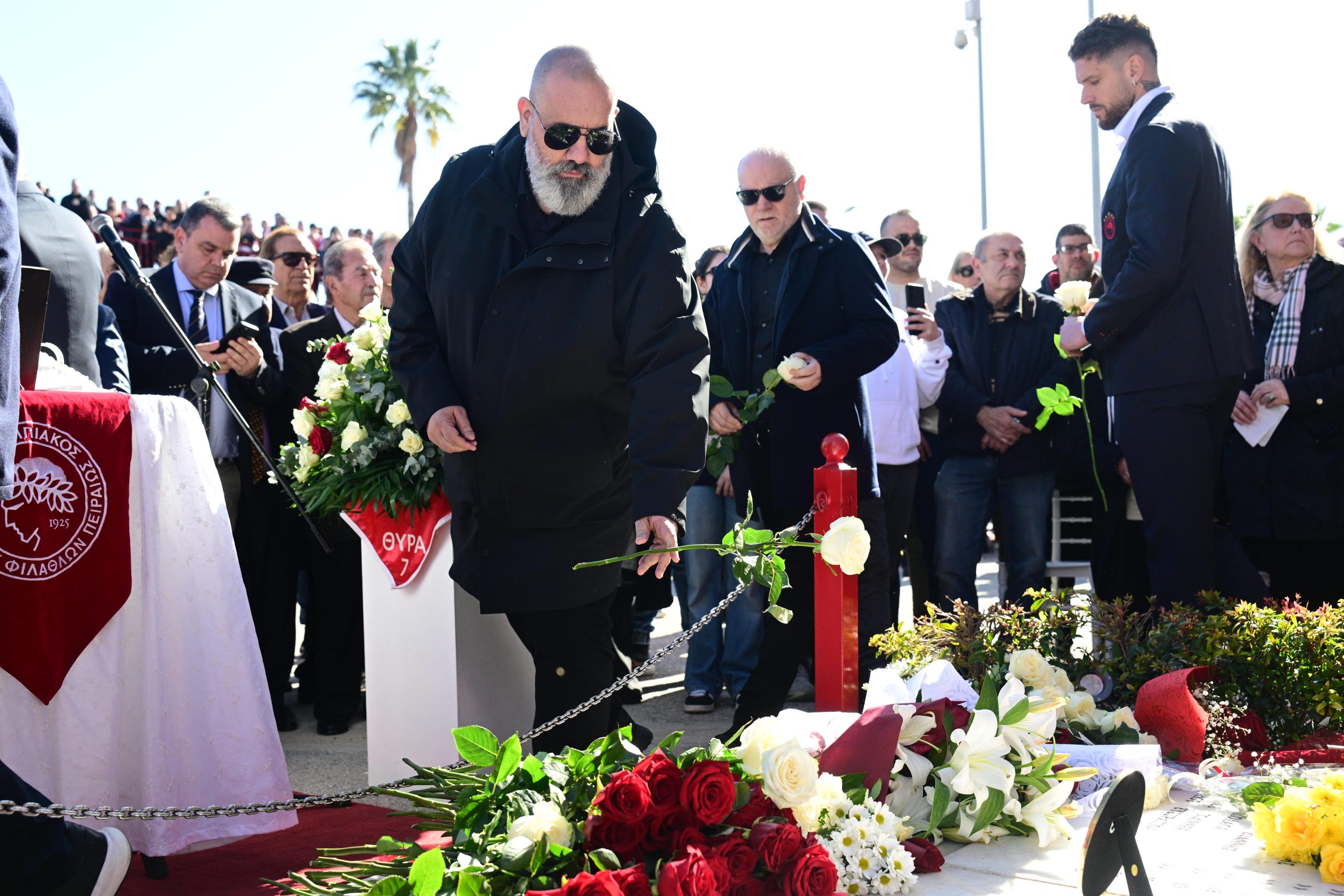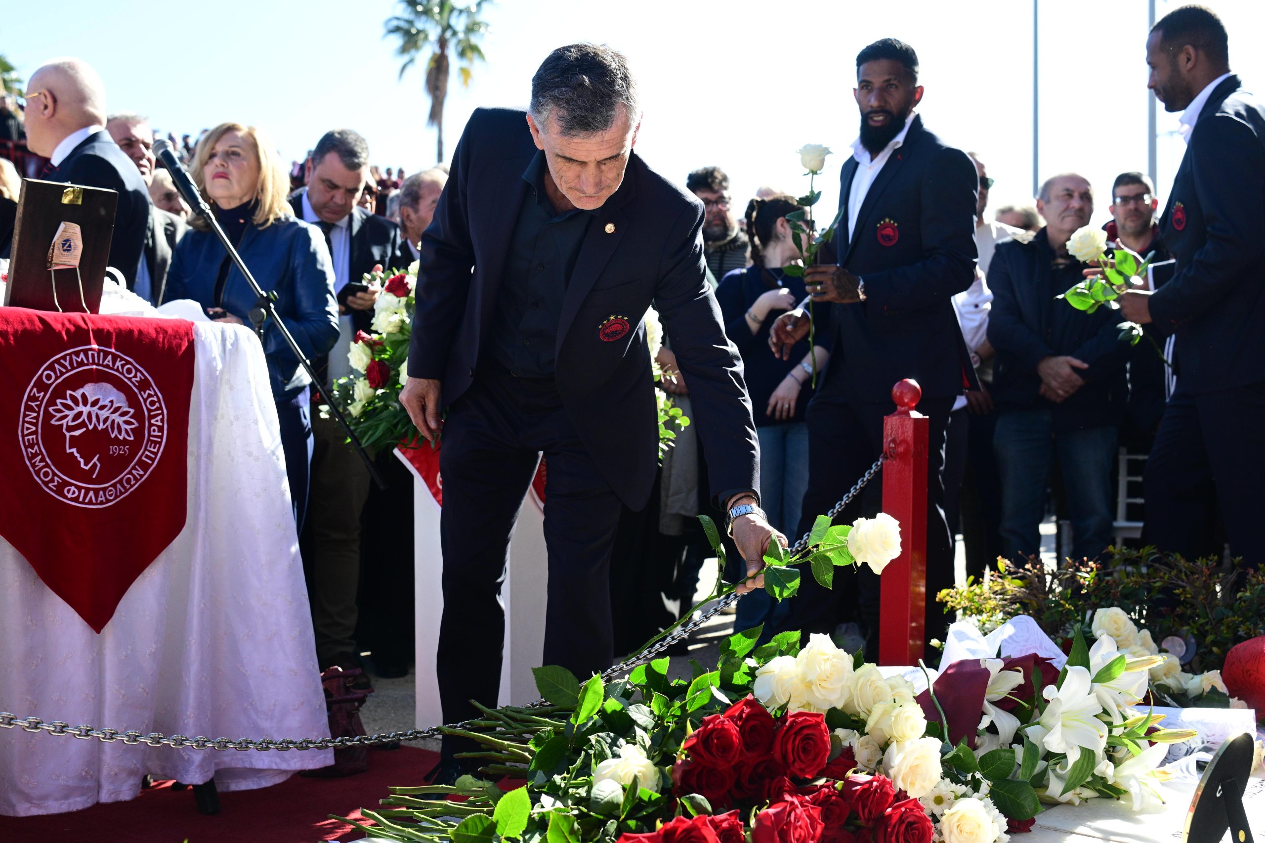 Στο «Γ. Καραϊσκάκης» βρέθηκε σύσσωμη η ΠΑΕ Ολυμπιακός, με τον Βαγγέλη Μαρινάκη και τους παίκτες της ομάδας να αφήνουν ένα λουλούδι στο μνημείο.