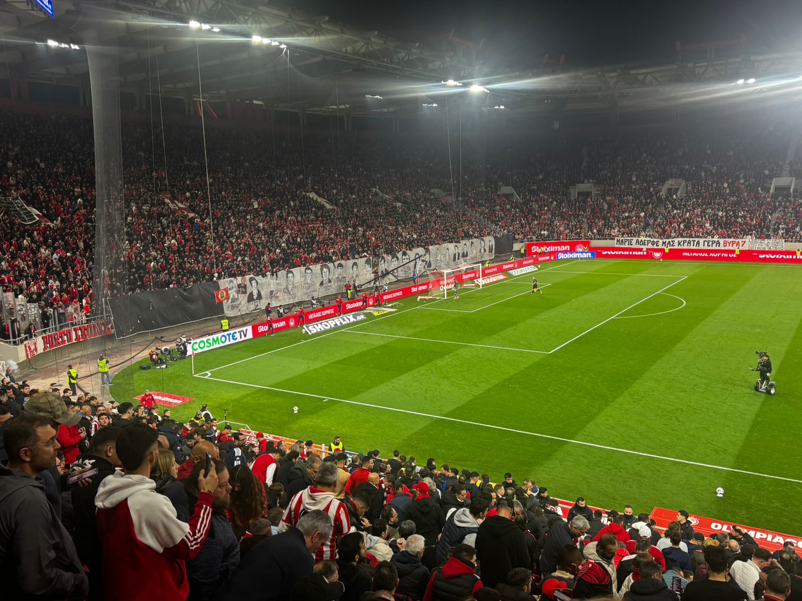 Η ατμόσφαιρα στο «Γεώργιος Καραϊσκάκης» πριν από το ντέρμπι του Ολυμπιακού με τον Παναθηναϊκό ήταν ιδιαίτερα φορτισμένη, καθώς οι οπαδοί των «ερυθρολεύκων» τίμησαν τη μνήμη των 21 θυμάτων της Θύρας 7 με έναν ξεχωριστό τρόπο.